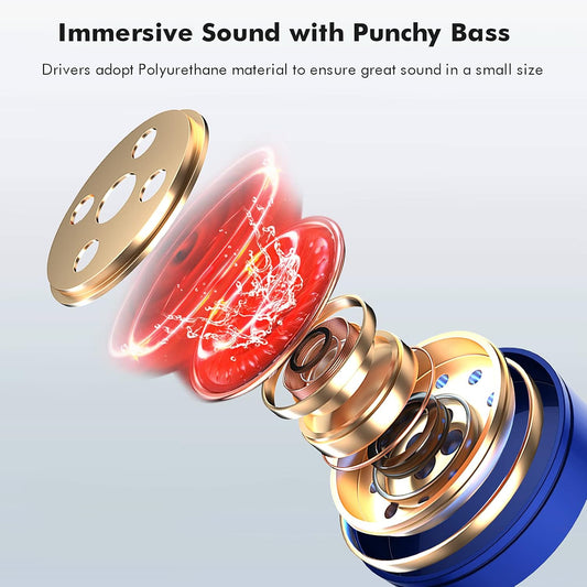 True Wireless Earbuds, Bluetooth 5.1 Small Ear Buds Comfortable Deep Bass Earphones 24Hrs Playtime Mini Charging Case IPX7 Waterproof Earbuds In-Ear Stereo Headphones Headset for Sports Workout Blue